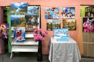 В библиотеке организована выставка «Радость в красках». На выставке представлены работы талантливой жительницы села Натальи Петровны