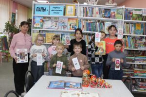 Ведущая рассказала об истории возникновения матрешки прочитали о том, как мастера создают эти замечательные куклы. В ходе программы участники смогли принять участие в веселых играх: «Веселые матрешки», «Надень платок», отгадывали загадки, рассматривали книги, а потом каждый разукрасил свою матрёшку.