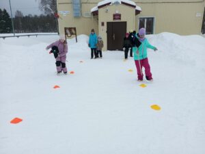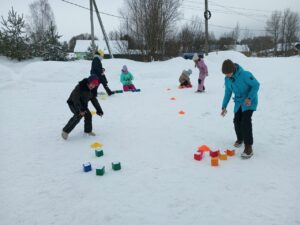 Бегали с КОНЕМ, кидали ВАЛЕНОК, надевали РУКАВИЦЫ , прыгали в МЕШКАХ, составляли слова «Зимушка-зима».