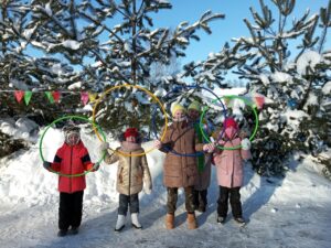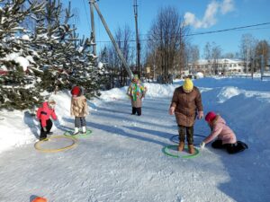 Наигрались до одышки, посоревновались кто кого перескочит, наплясали аж снег растаял под ногами! А потом дружно уселись делать красивые зимние аппликации