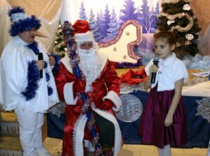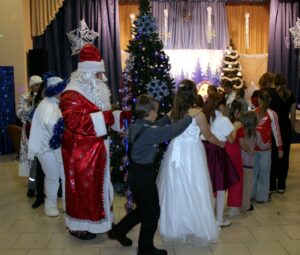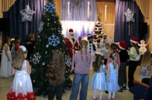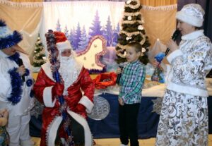 Мы водили хоровод вокруг ёлки, пели, танцевали и рассказывали стихи. Каждый из участников получил сладкие подарки!